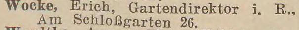Erich Wocke. Książka adresowa z 1926 roku. Zbiory Pomorskiej Biblioteki Cyfrowej.