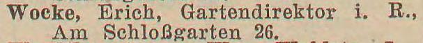Erich Wocke. Książka adresowa z 1925 roku. Zbiory Pomorskiej Biblioteki Cyfrowej.