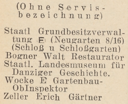 Erich Wocke. Am Schloßgarten. Książka adresowa z 1931 roku. Zbiory Pomorskiej Biblioteki Cyfrowej.