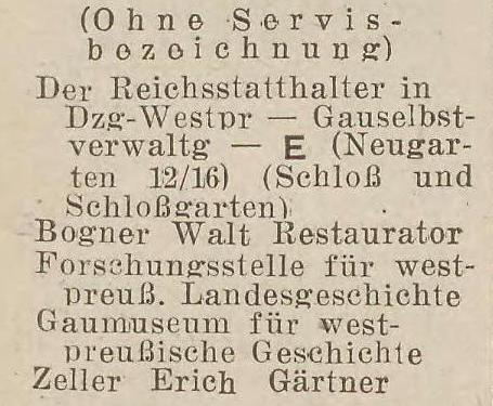 Erich Zeller. Am Schloßgarten. Książka adresowa z 1942 roku. Zbiory Pomorskiej Biblioteki Cyfrowej.