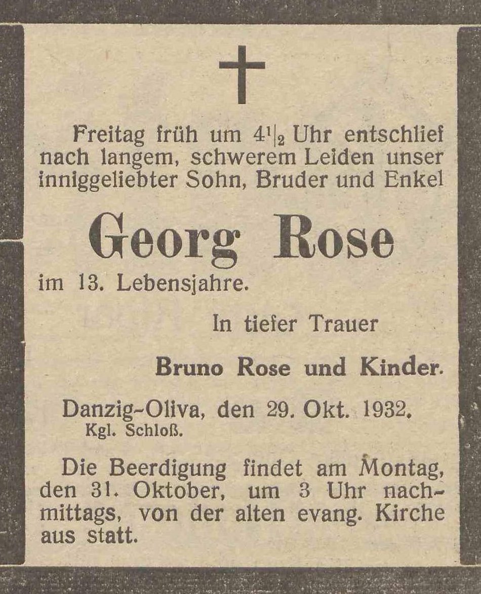 Georg Rose. Bruno Rose. Kgl. Schloß. Danzig-Olivaer Zeintung nr 255 z 29. 10. 1932 r.