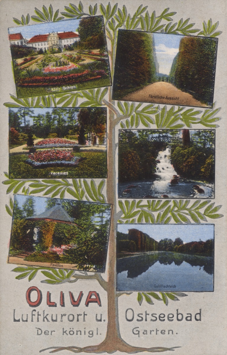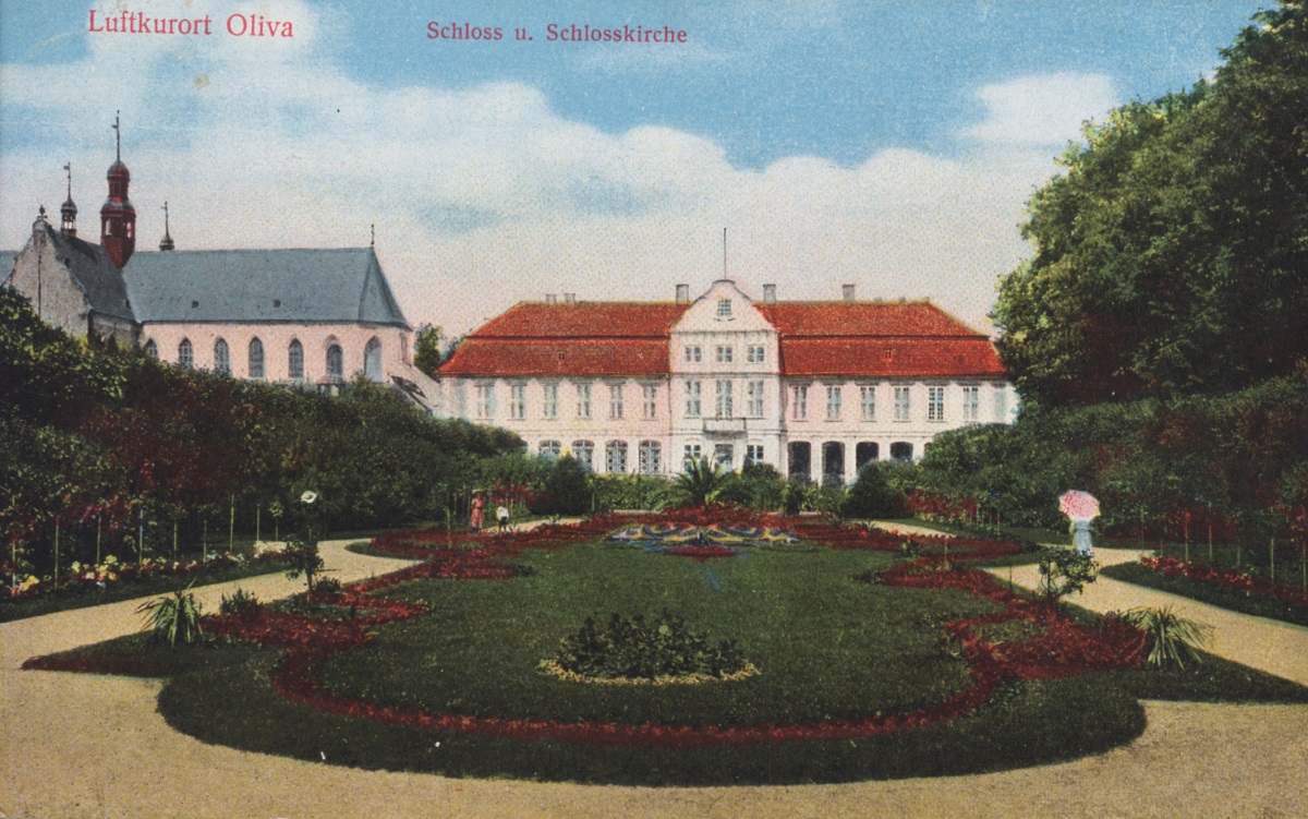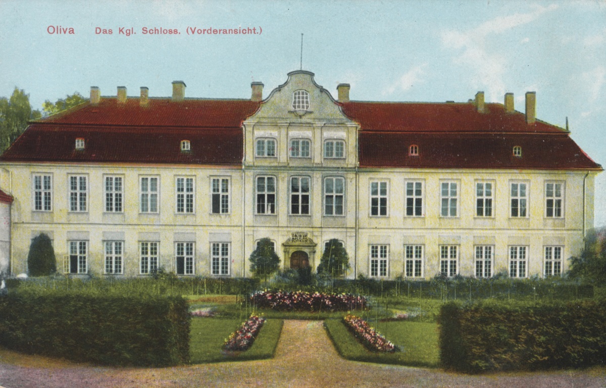 W 1919 r. Aleksander Majkowski, korzystając z przeprowadzanego oddziału pruskich posesji między Polskę i Wolne Miasto Gdańsk, zabiegał o przydział poopackiej rezydencji Polsce, z myślą o umieszczeniu w mej zbiorów z sopockiego Muzeum Kaszubsko-Pomorskiego, otwartego przezeń w 1913 r. Zamiaru tego nie zrealizował, gdyż pałac przyznano władzom Oliwy, a te przeznaczyły go na biura i mieszkania. Z kolei zamierzały otworzyć w nim lokal rozrywkowy z winiarnią w gotyckiej piwnicy i ogródkiem kawiarnianym w parku. Usiłowano też uruchomić w pałacu kasyno gry. Te barbarzyńskie projekty odrzuciły władze Wolnego Miasta. W 1926 r. przeprowadzono rewaloryzację zabytku i 1 V 1927 r. otwarto w jego wnętrzu placówkę muzealną (Staatliche Landesmuseum fur Danziger Geschichte) z ekspozycjami ukazującymi w fałszywym naświetleniu dzieje ziemi gdańskiej.