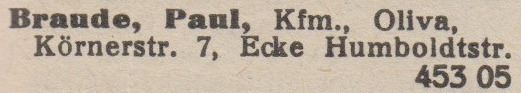 Paul Braude. Körnerstraße 7, Ecke Humbolldstraße. Ksi¹¿ka telefoniczna z 1937 roku. Zbiory TPG Strefa Historyczna WMG.