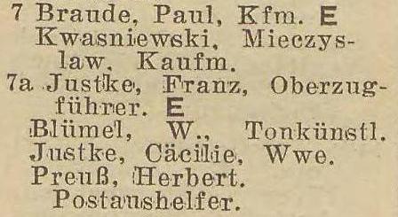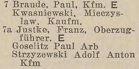 Paul Braude. Franz Justke. Ksi¹¿ka adresowa z 1937-1938 r. Zbiory Piotra Mazurka.