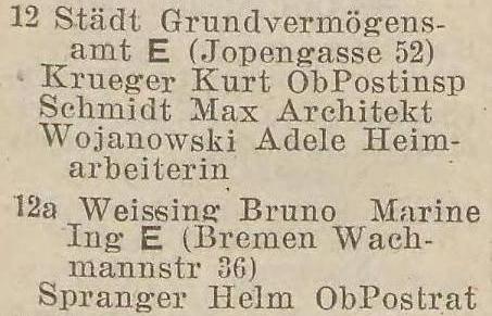 Juliane Pranschke. Bruno Weissing. Książka adresowa z 1928 r. Zbiory Pomorskiej Biblioteki Cyfrowej.