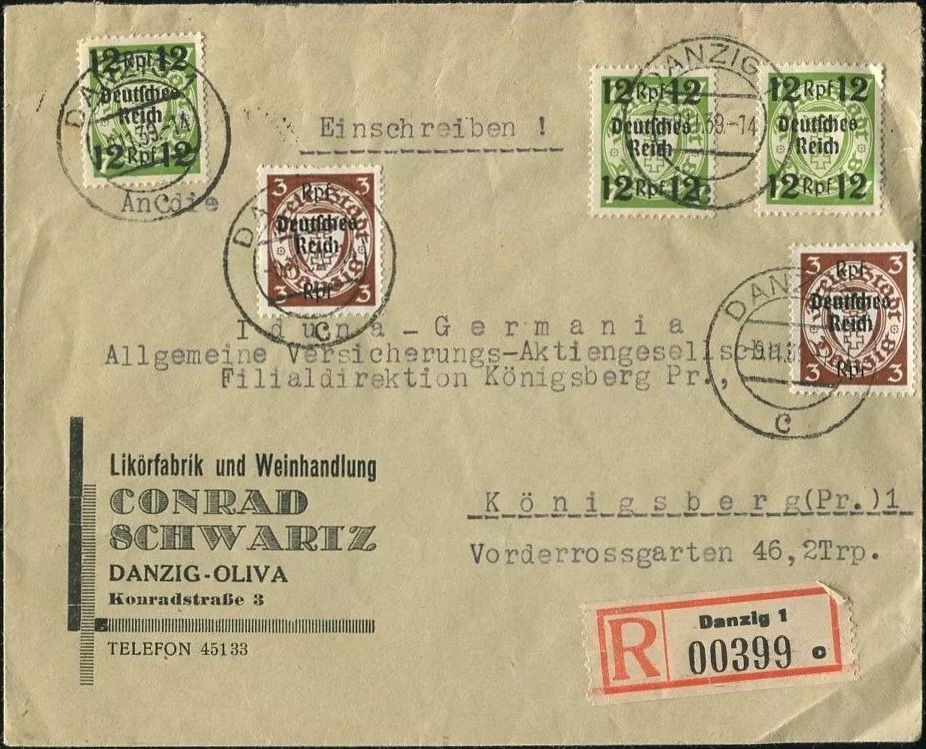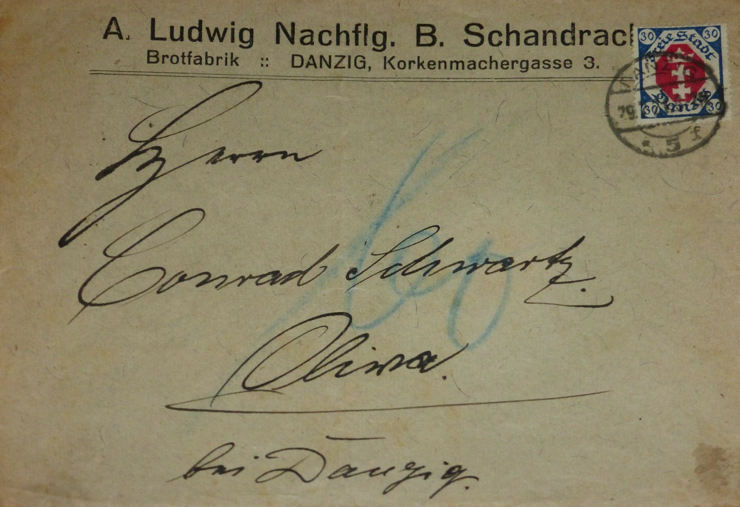 Conrad Schwartz. Całostka wysłana z Gdańska 29. 07. 1921 roku. Ze strony eBay.de.