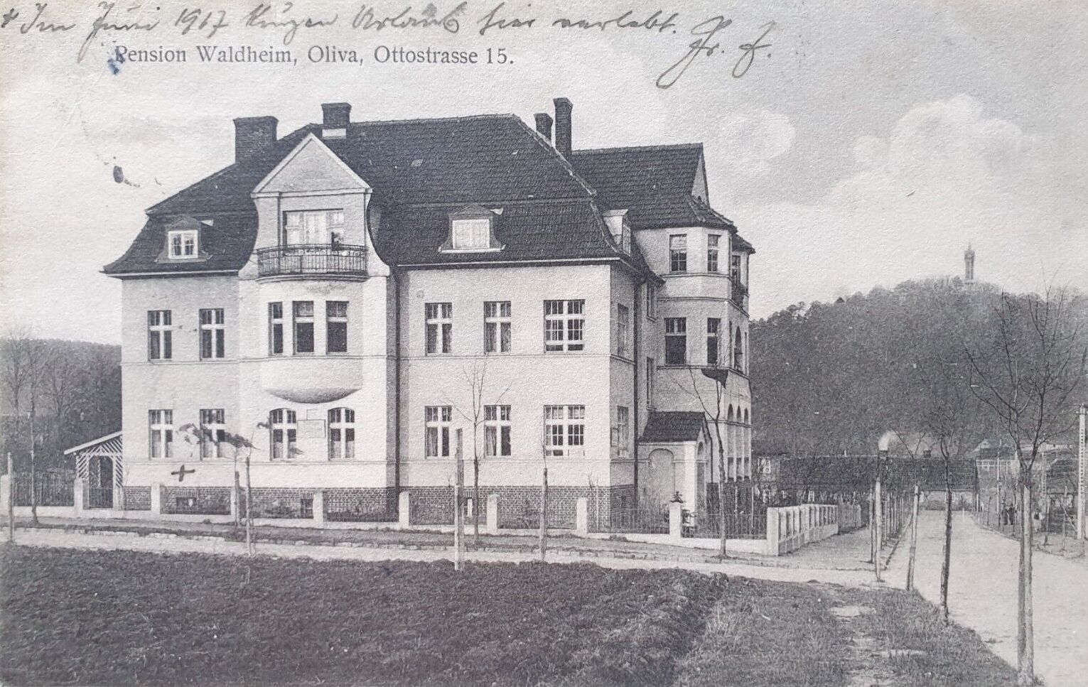Pension Waldheim, Oliva Ottostraße 15. Ecke Jahnstraße. Luftkurort und Ostseebad Oliva bei Danzig, 1914.