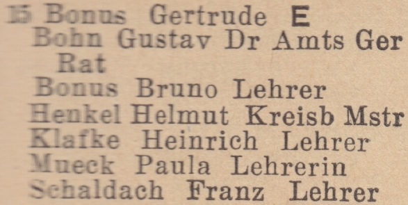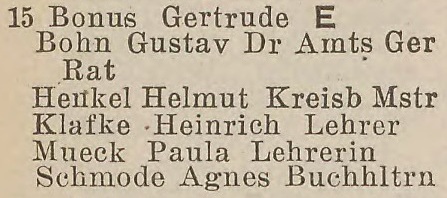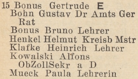 Pluzkiewicz, Gertrud, asystentka biurowa (Bürogehilfin).