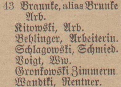 Adres: Köllner Chaussee 7. Rozalia Kunkel zd. Pettke (ur. 1886, zm. 04.01.1943 - os³abienie miêœni sercowych). ród³o: , 01.1943 poz. 3.