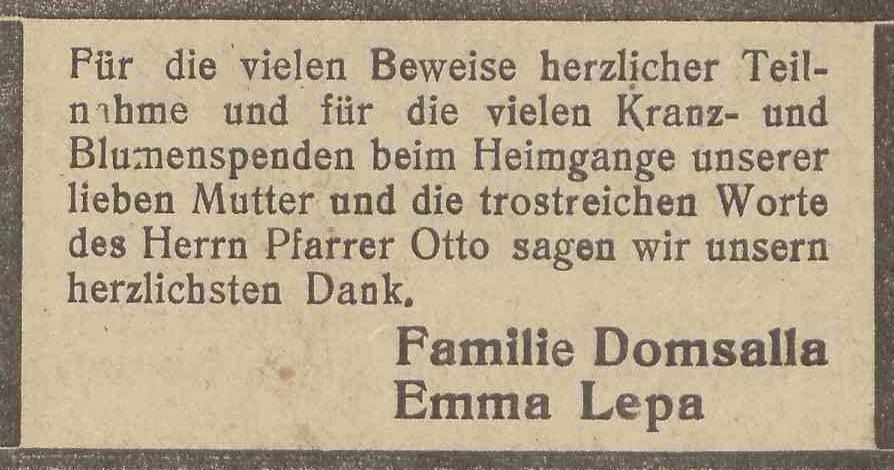 Emma Lepa. Domsalla. Olivaer Zeintung nr 120 z 25. 05. 1929 r.