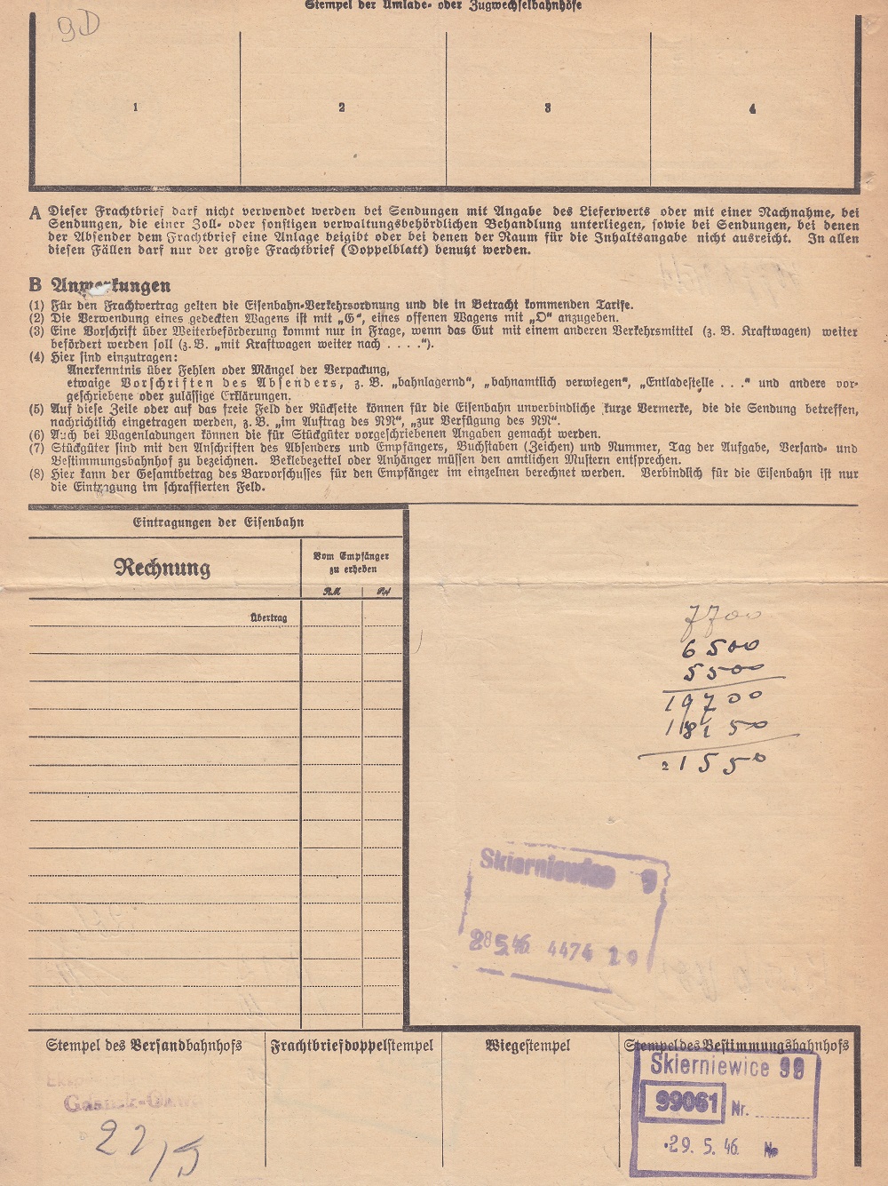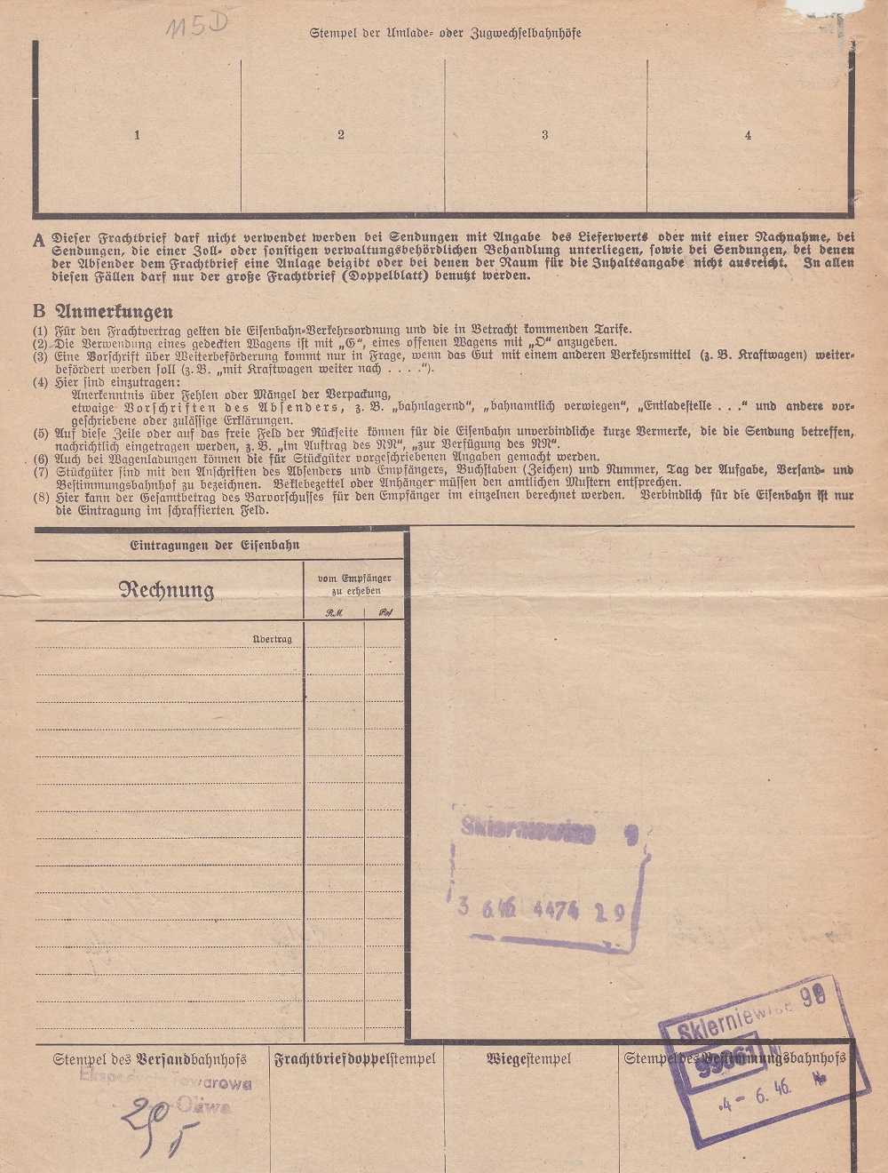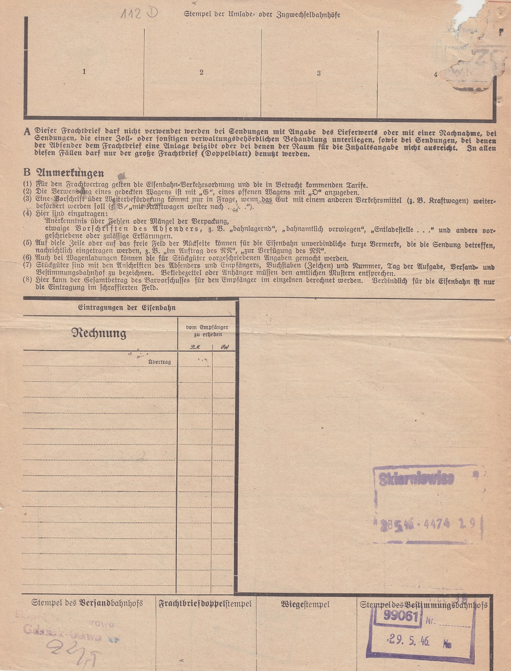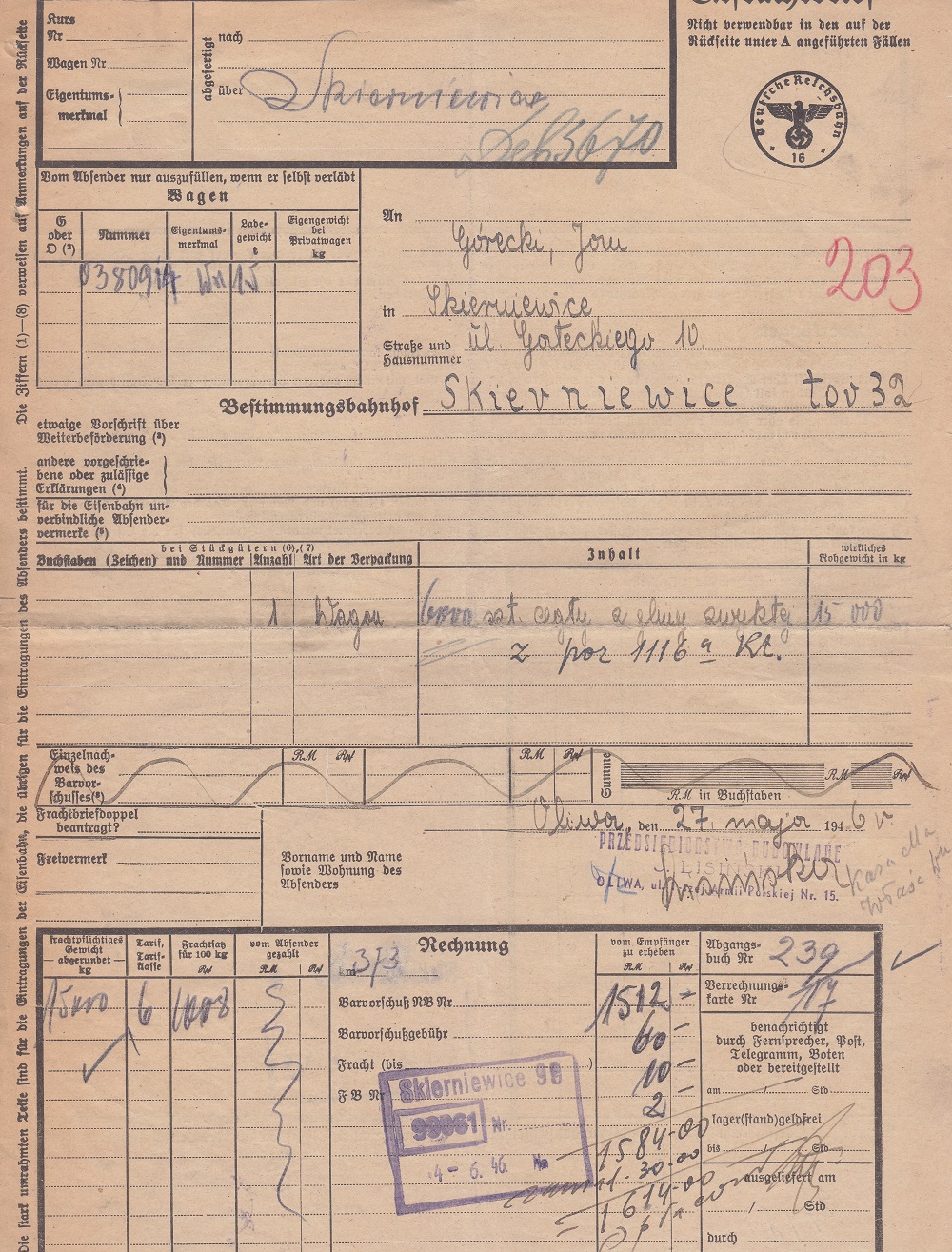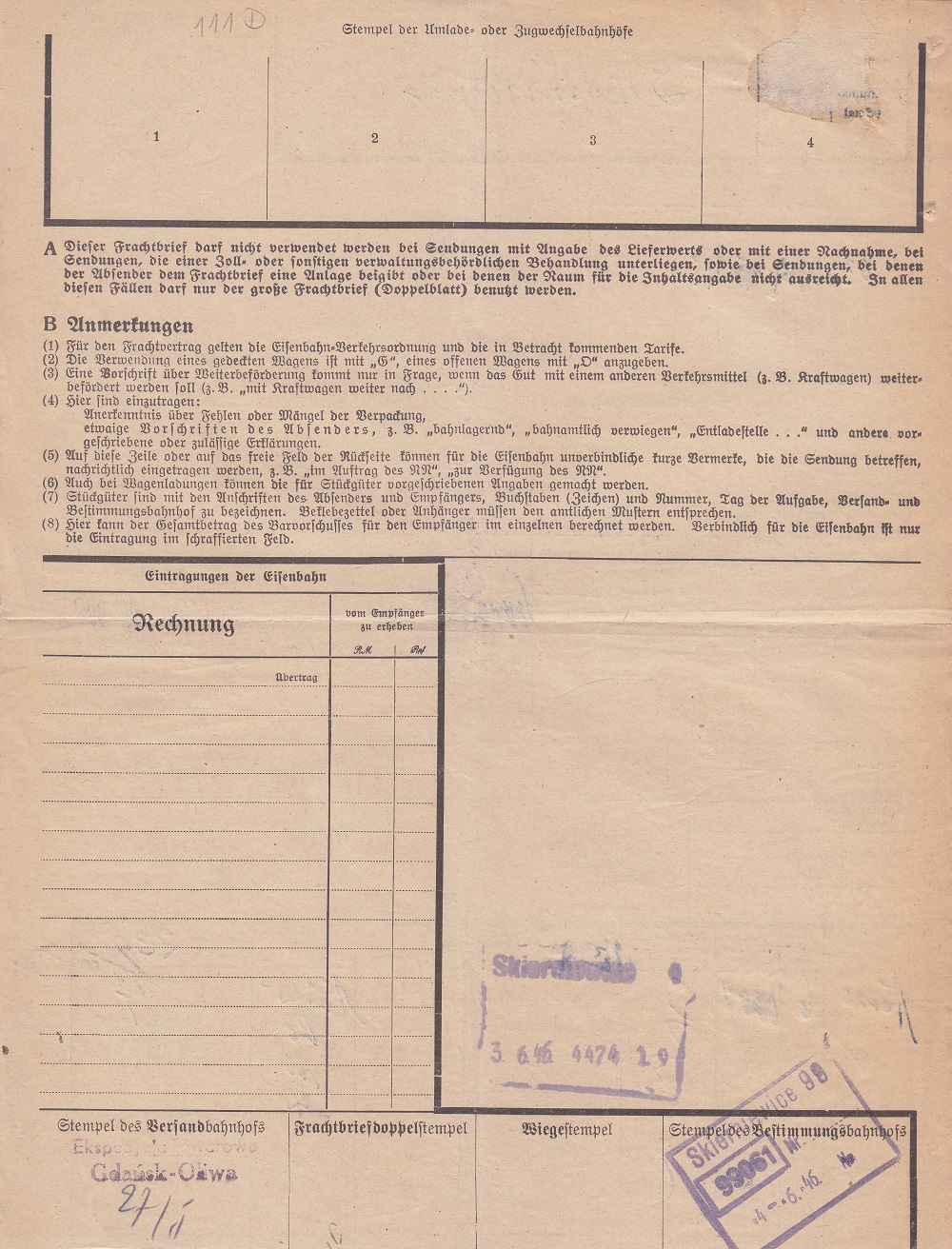 Nadano (Ekspedycja Towarowa Gdańsk-Oliwa): 5.000 sztuk cegły z gliny zwykłej wagonem o tonażu 15 ton.