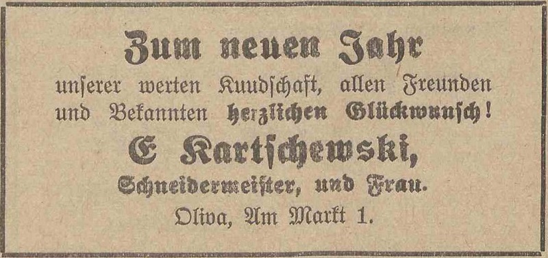 Josef Kartschewski, Schneidermeister. Podziękowania noworoczne, Olivaer Zeitung nr 305 z 31. 12. 1931.