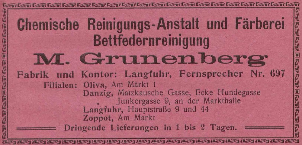 M. Grunenberg. Książka adresowa gminy Oliwa z 1913 roku. Zbiory Pomorskiej Biblioteki Cyfrowej.