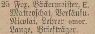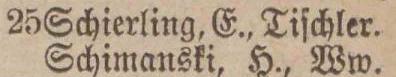 Domanski, Richard, Bernsteinarb. Fischer, Anastasius, Eigenthümer. Fox, Theodor, Bäckermeister. v. Sychowski, Joh., Landwirth. Woycznig, Clara, Schneiderin. Zierke, Bertha, geb. Warsang, Beamten-Wittwe.