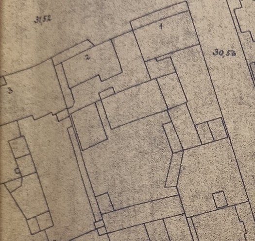 Stary Rynek Oliwski nr 1-3. Fragment planu kartograficznego Oliwy datowanego na 1932 r. Przekazała Grażyna Niemyjska.