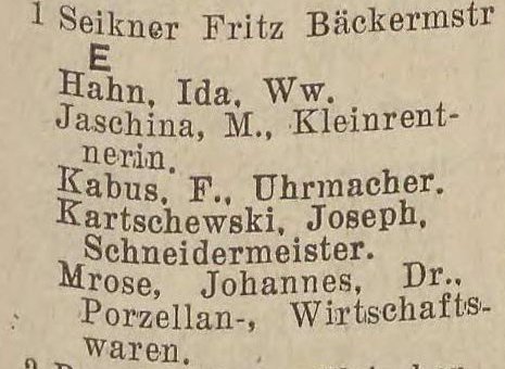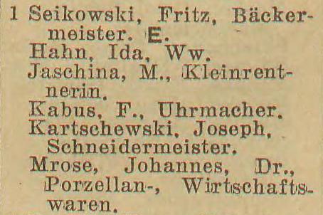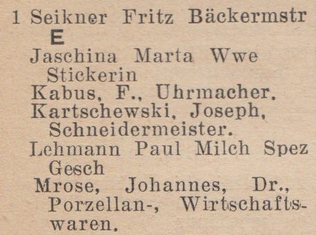 Fritz Seikowski. Książka adresowa z 1926 roku. Ze strony: wiki-de.genealogy.net.