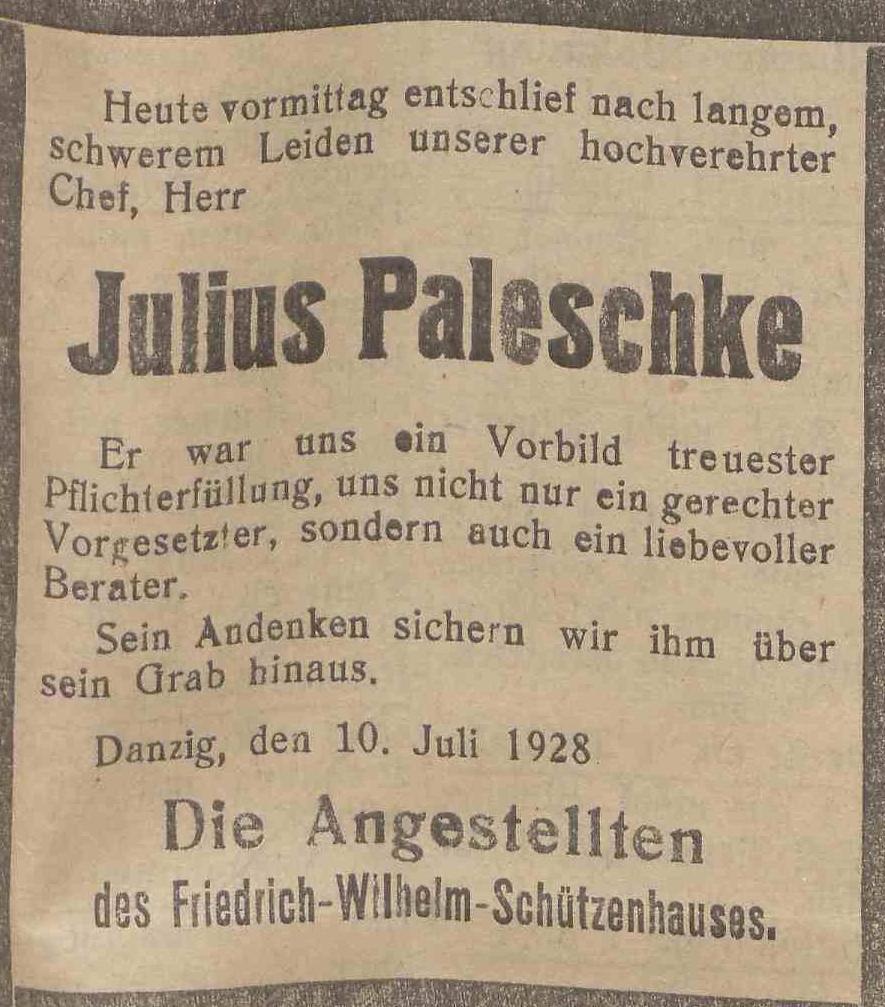 Julius Paleschke. Olivaer Zeintung nr 162 z 12. 06. 1928 r.