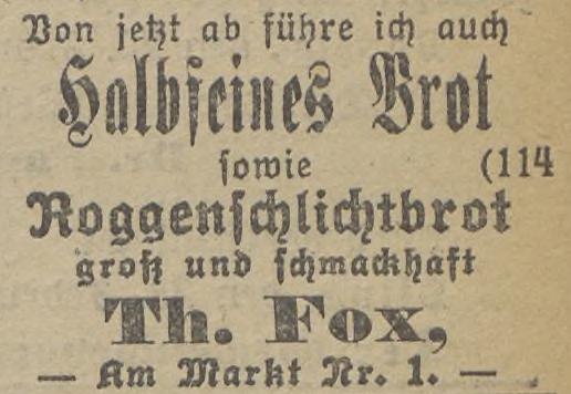 Th. Fox. Am Markt nr. 1. Olivaer Nachrichten 04. 03. 1909 r. Ze strony www.Polona.pl.