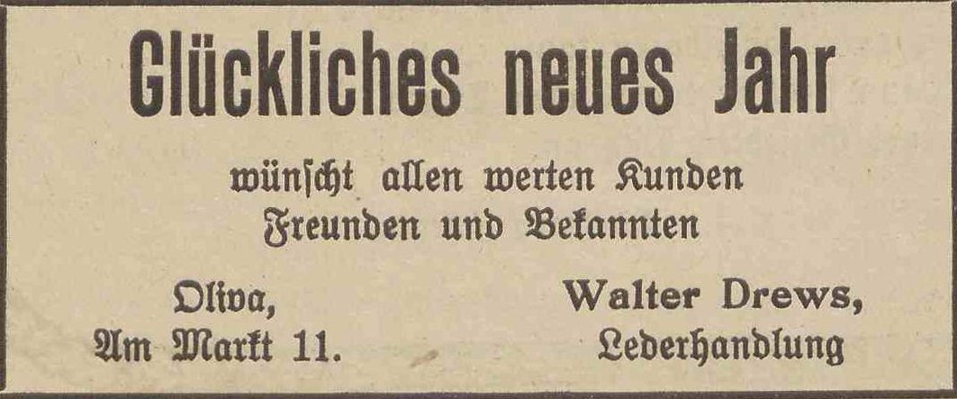Walter Drews . Podziękowania noworoczne, Olivaer Zeitung nr 305 z 31. 12. 1924.