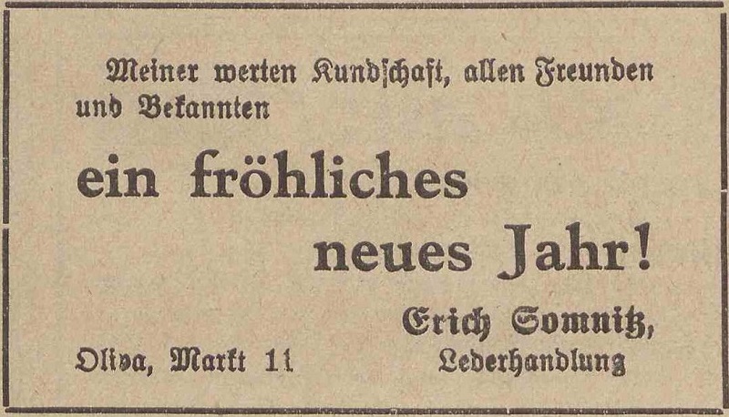 Erich Somnitz, Lederhandlung. Podziękowania noworoczne, Olivaer Zeitung nr 305 z 31. 12. 1929.