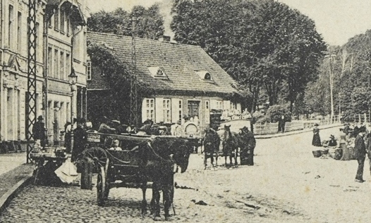 Ul. Am Markt (Stary Rynek Oliwski). Widok w stronę ul. Spacerowej. Od lewej numery 10, 11 i nr 12. Pierwsza dekada XX wieku. Zbiory Piotra Leżyńskiego.