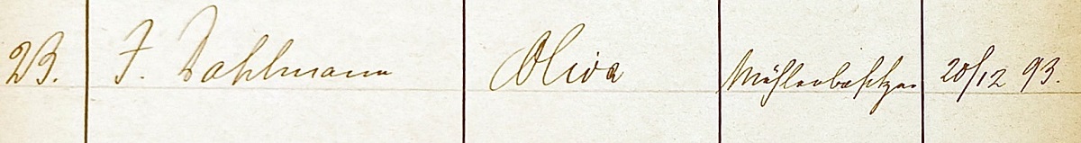 Julius Dahlmann. Baukonholle Oliva IXX. Wpis z 20. 12. 1893. Przekazała Grażyna Niemyjska.