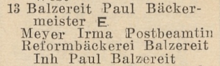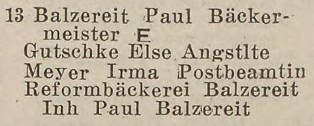 Friedrich Balzereit. Książka adresowa z 1926 roku. Ze strony: wiki-de.genealogy.net.