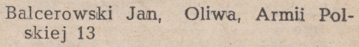 Balzereit. Książka adresowa gminy Oliwa z 1925 roku. Zbiory Pomorskiej Biblioteki Cyfrowej.