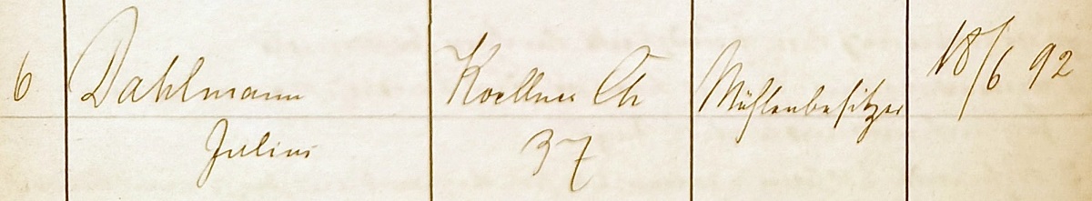 Julius Dahlmann. Baukonholle Oliva IXX. Wpis z 18. 06. 1892. Przekazała Grażyna Niemyjska.