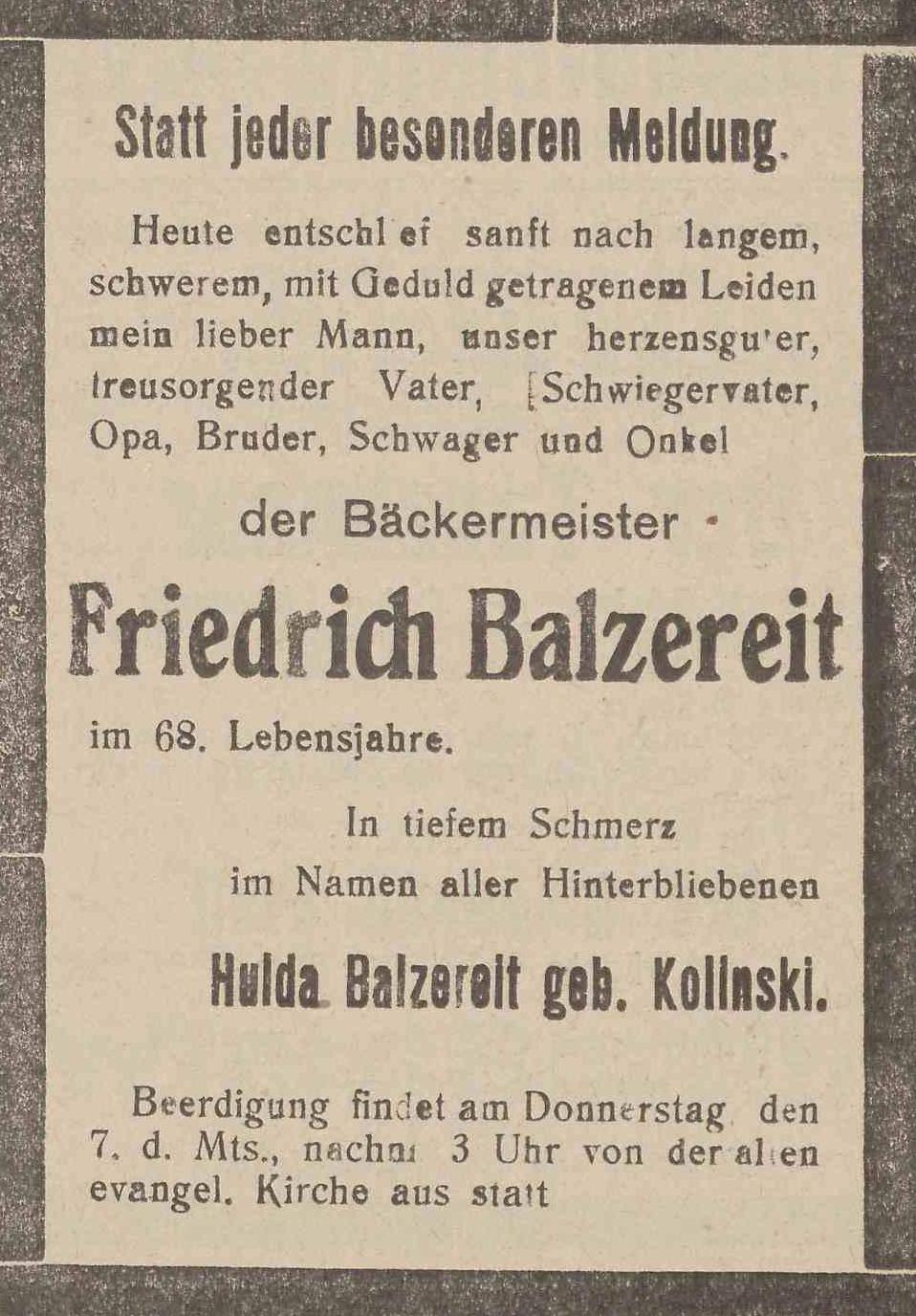 Balzereit, Friedrich, mistrz piekaraki (Bäckermeister).