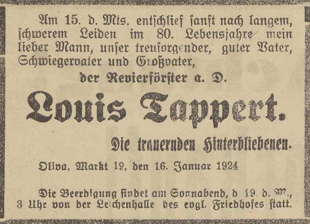 W 1909 roku w Oliwie mieszkał Rudolf Friedrich. W Gdańsku Julius Friedrich: