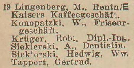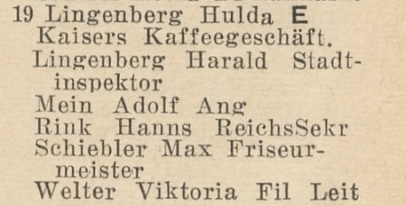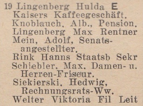 Max Lingenberg. Książka adresowa z 1926 roku. Ze strony: wiki-de.genealogy.net.