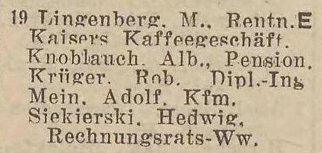 Siekierski, Hedwig, wdowa po księgowym (Rechnungsratwitwe).