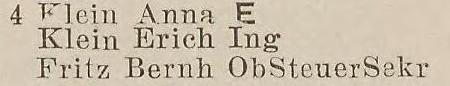 Anna Klein. Książka adresowa gminy Oliwa z 1925 roku. Zbiory Pomorskiej Biblioteki Cyfrowej.