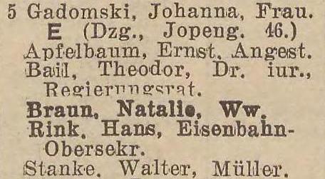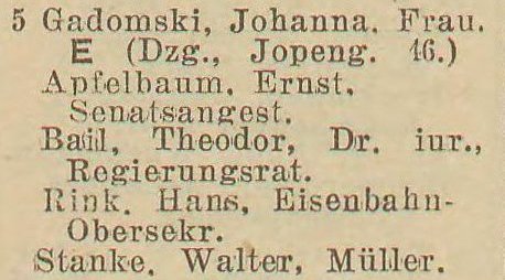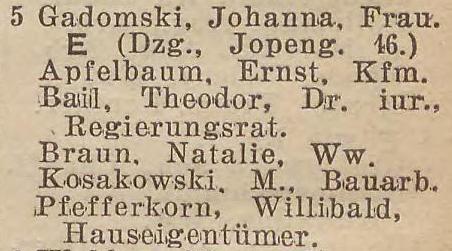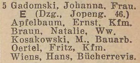 Johanna Gadomski. Książka adresowa z 1937-1938 roku. Zbiory Piotra Maurka.