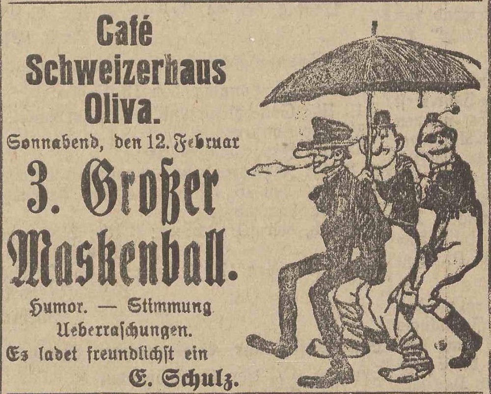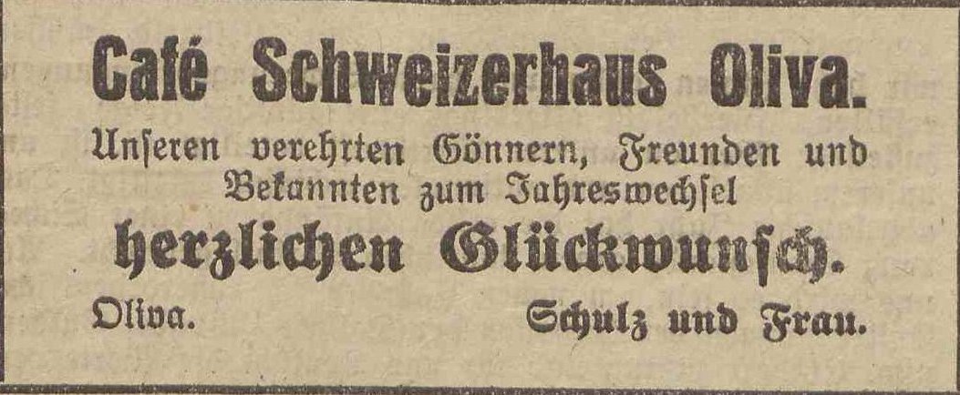 Karl Schulz, Café Schweizerhaus. Podziękowania noworoczne, Olivaer Zeitung nr 306 z 31. 12. 1920.