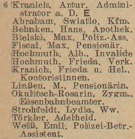 Kranich. Książka adresowa gminy Oliwa z 1916 roku. Zbiory Mirosława Piskorskiego.
