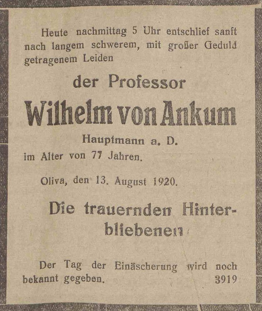 Ankum. Profeßor. Villa "Emilie". Książka adresowa gminy Oliwa z 1916 roku. Zbiory Mirosława Piskorskiego.