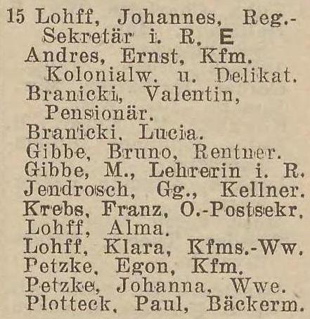 Johannes Lohff. Książka adresowa gminy Oliwa z 1915 roku. Zbiory Pomorskiej Biblioteki Cyfrowej.