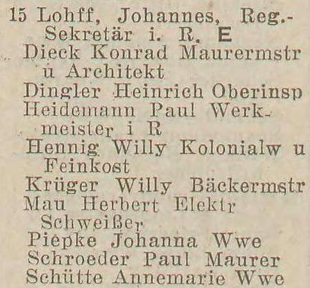 Lohff, Johannes, sekretarz w stanie spoczynku (Regierungssefr. a. D.).
