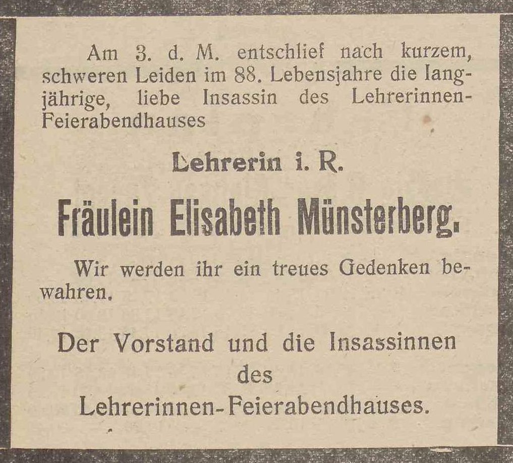 Münsterberg, Elisabeth, Lehrerin a. D.