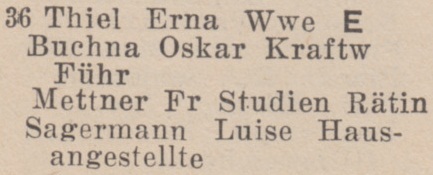 Erna Thiel. Książka adresowa z 1936-1937 roku. Zbiory Pomorskiej Biblioteki Cyfrowej.