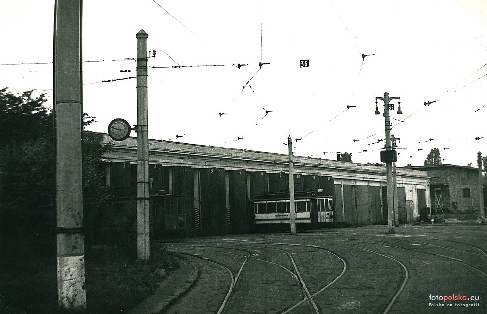 Zajezdnia tramwajowa przy ulicy Kronprinzenallee nr 110. Około 1940 roku. Pobrano z www.FotoPolska.eu (KC).