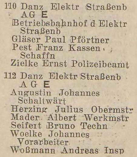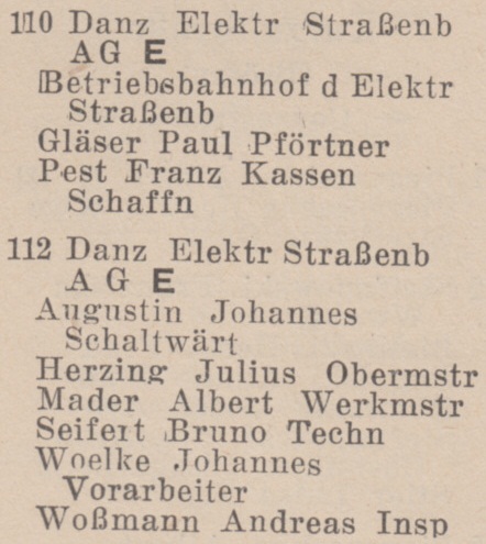 Danziger Elektrische Strassenbahn A.G. Książka adresowa z 1937-1938 roku. Zbiory Piotra Mazurka.