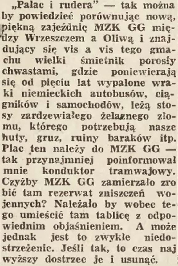 Jesienią 1945 roku z placu manewrowego we Wrzeszczu (przy Grunwaldzkiej, między ulicami Czarną i Braci Lewoniewskich) wprowadzono na tory tramwajowe parowóz w celu usunięcia zwalonego mostu przy Zajezdni Wrzeszcz.