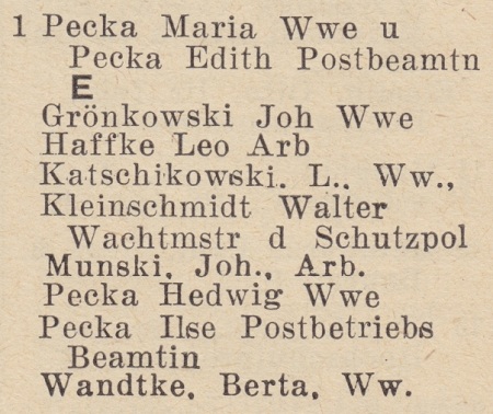 Maria Pecka. Książka adresowa z 1933 roku. Zbiory Pomorskiej Biblioteki Cyfrowej.