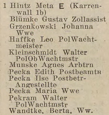 Meta Hintz. Książka adresowa z 1942 roku. Zbiory Pomorskiej Biblioteki Cyfrowej.