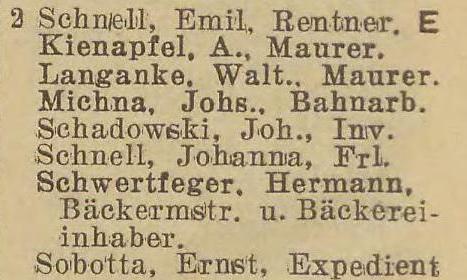 Schnell, Emil, właściciel domu (Hausbesitzer).