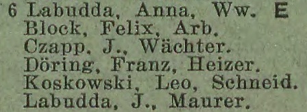 Anna Labuda. Książka adresowa gminy Oliwa z 1916 roku. Zbiory Mirosława Piskorskiego.