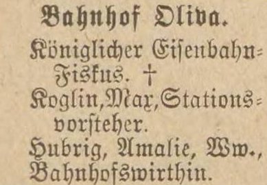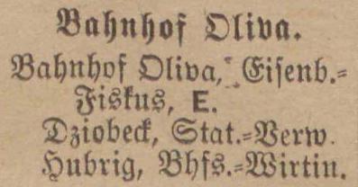 Bahnhof. Książka adresowa gminy Oliwa z 1910 roku. Zbiory Pomorskiej Biblioteki Cyfrowej.